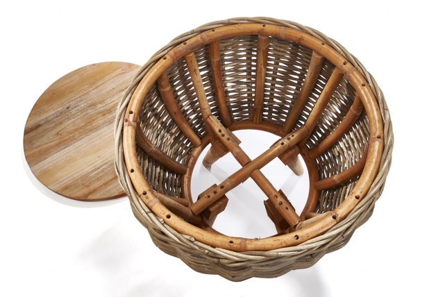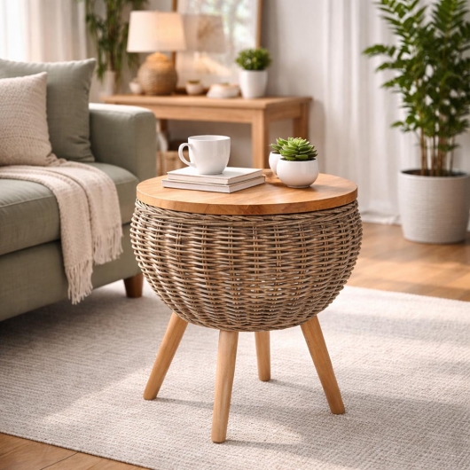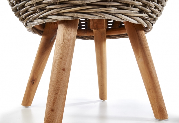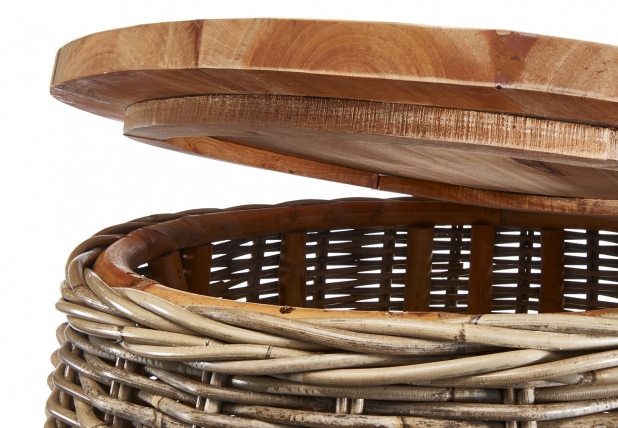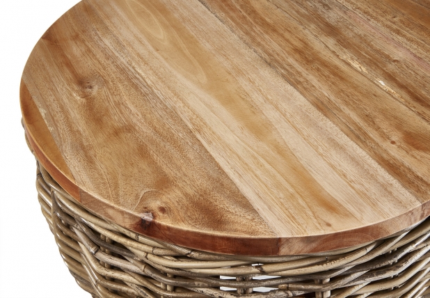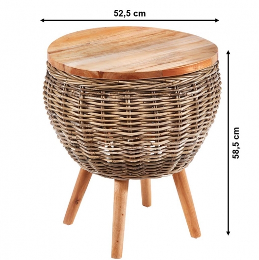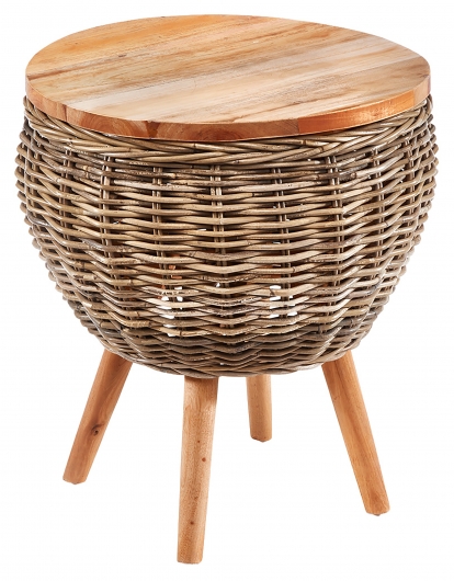 Dekorativer Beistelltisch ALINA aus grauem Mahagoni Holz und Rattan